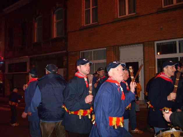 Nous partons pour quelques kilomètres afin de rejoindre notre local, dans le village. Nous sommes suivi d'un tambour d'une caisse et d'une clarinette. Nous martelons le sol de nos sabots et devant chaque maison où nous ramassons un ou plusieurs Gilles, la clarinette joue "L'Aubade Matinale" (air de gille qui n'est jouée qu'à ces moments là).